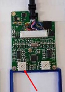 Ta av dekselet under, 4 skruer. Rød pil er justeringskruen. Din chip er forhåndsinnstilt på trinn 6. (Noen chipper har bare én justeringsskrue, da er det denne)